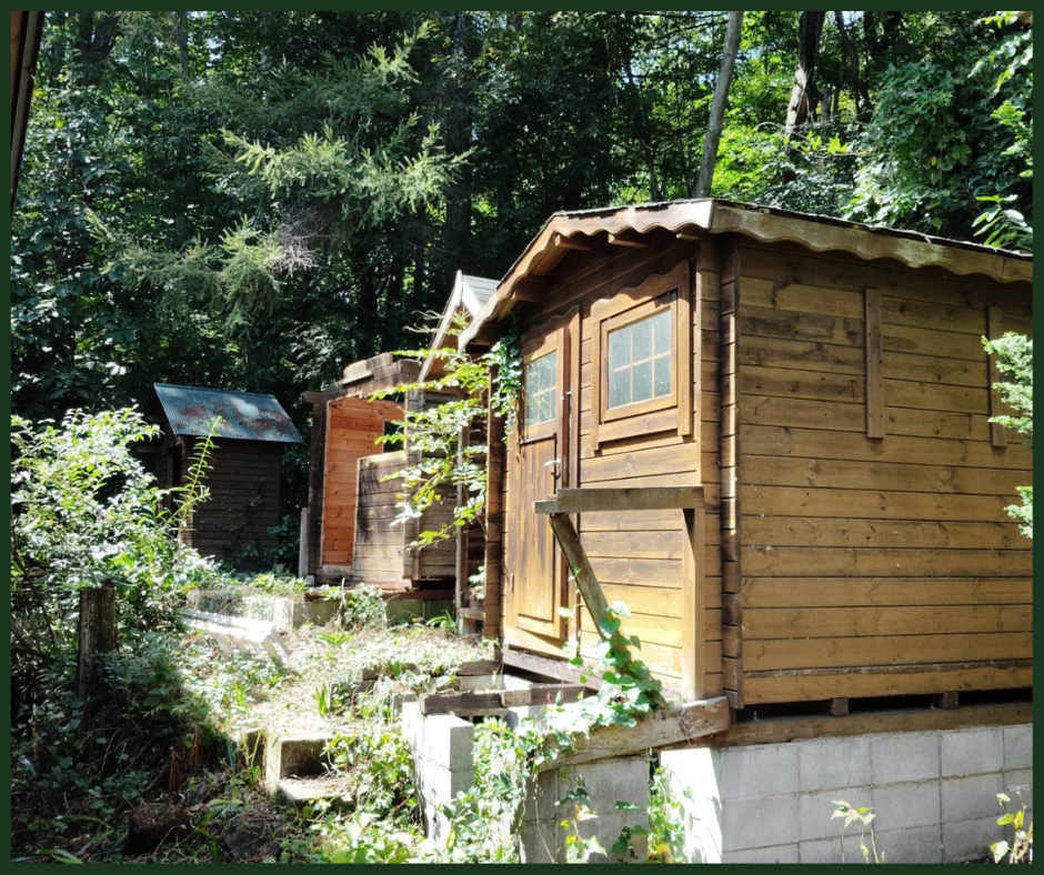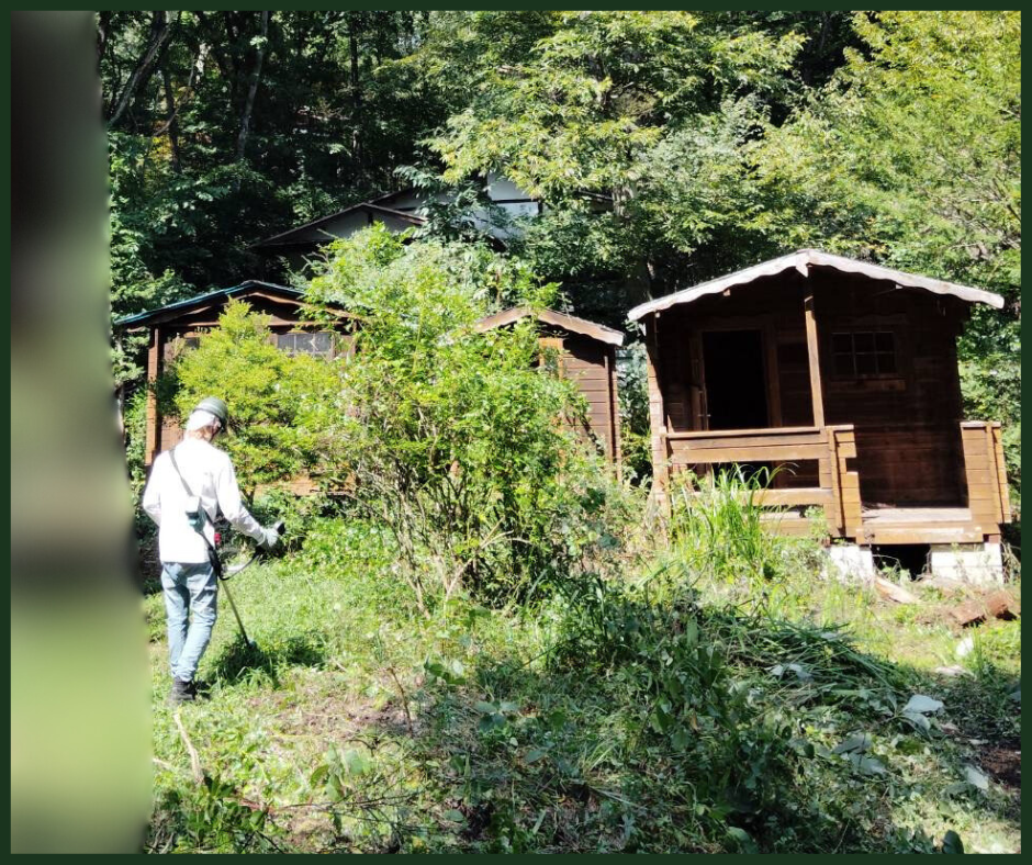 ログハウス6棟 解体工事・敷地内草刈り、雑木伐採①